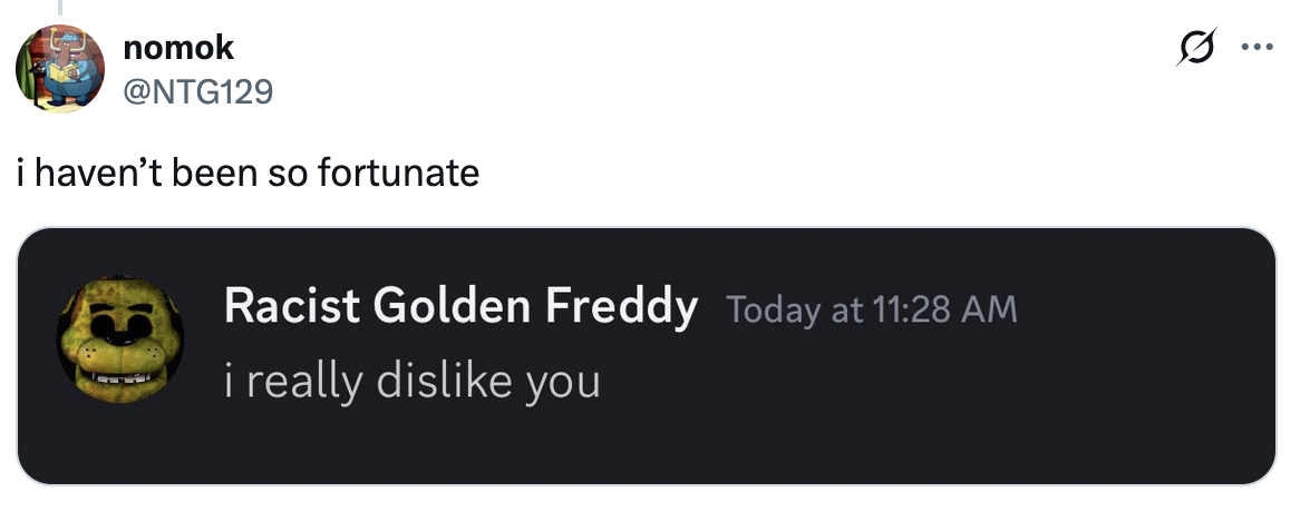 the thing this was in response to got deleted. but i just really find “i really dislike you” so funny